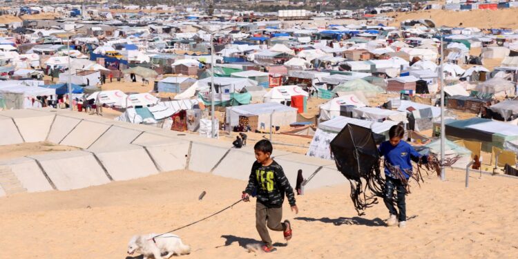 Kamp pengungsian di Rafah, tempat orang-orang Gaza berlindung. Foto: Reuters / Displaced Palestinian children at a refugee camp in Rafah (Foto: Saleh Salem/Reuters)[/caption]