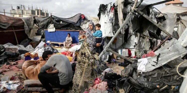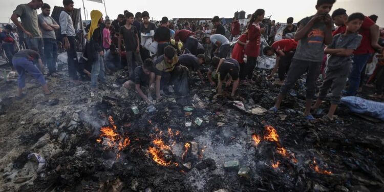 Pasca serangan Israel pada tenda-tenda pengungsian di Rafah (Foto: Ali Jadallah/Anadolu)[/caption]
