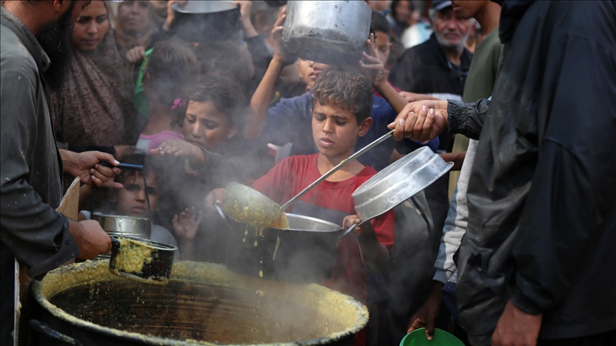 Warga Gaza yang tengah tenang mengantri untuk memperoleh makanan. Sumber: Anadolu Ajansi[/caption]