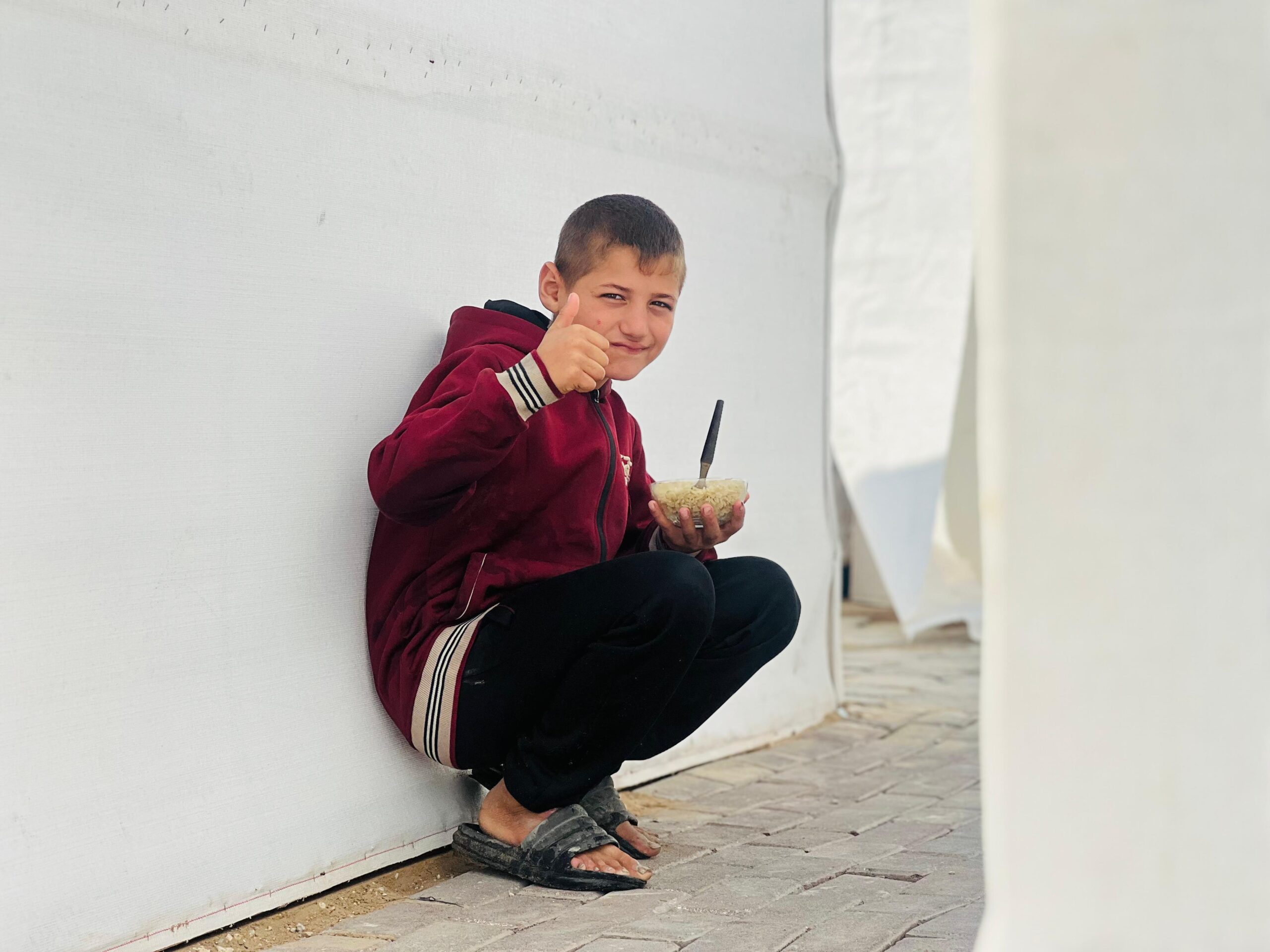Dalam sebuah video, terlihat anak Palestina yang mendapatkan buah-buahan. Memang bukan anggur muskat, hanya pisang, kesemek, dan jeruk. Meski begitu, yang menarik adalah reaksi anak-anak ini. Meski mereka baru pertama kalinya mendapati buah-buahan lagi, namun bukannya mereka menyerbu, apalagi berebut. Yang mengemuka ialah rasa syukurnya. Bahkan, salah satunya sampai memeluk sosok yang memberinya. Dilanjutkan dengan saling peluk satu sama lain dengan saudaranya.