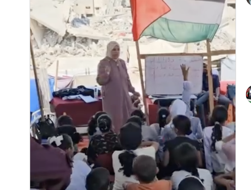 Salah satunya, sebagaimana dilaporkan oleh salah satu warga Palestina lewat akun instagramnya, @haneen.maher.salem , bahwa para guru di sana berupaya bertahan dalam kondisi sult. Mereka berinisiatif untuk memberikan pengajaran pada para siswa setelah setahun vakum. Meski di bawah ancaman bombardir, tantunya dengan kebisingan suara drone – sesekali diselingi bom, di dalam tenda pengungian yang sederhana, mereka mengajar anak-anak nampak penuh semangat belajar. Dalam video tersebut, anak-anak yang diwawancara mengatakan, “kami akan tumbuh, kami akan belajar, dan kami akan membangun kembali tanah air kami”.