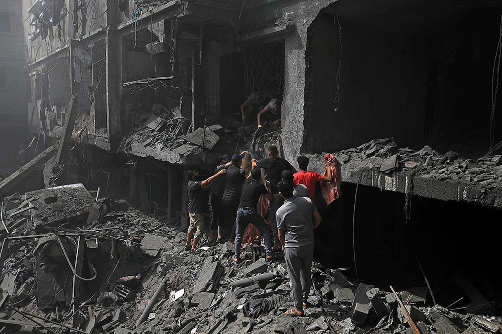 Mengeluarkan orang-orang dari reruntuhan setelah serangan udara besar-besaran di Deir al-Balah, Gaza tengah, pada bulan Desember. Sumber: The markaz Review/ Mohammed Zaanoun/ Activestills.[/caption]