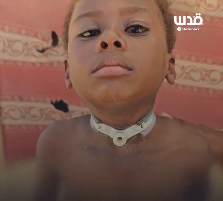 Saif Abu Sita menderita karena tenggorokannya terluka parah, Namun, akses berobat semakin sulit karena serangan Israel kepada Gaza. (Foto: tangkapan layar QudsNen)[/caption]