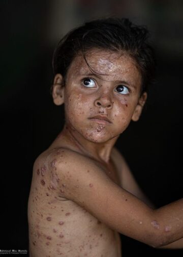 Israel terus menerus menyerang Gaza, menyebabkan warga Gaza menderita kerugian parah, baik itu kehilangan nyawa, menderita luka-luka akibat bom, kehilangan rumah-rumah sehingga harus mengungsi di tenda pengungsian. Warga Gaza pun mengalami kelaparan dan krisis air bersih. Rupanya tak hanya itu efek yang terjadi pada keberlangsungan hidup warga Palestina. Akibat genosida, banyak anak-anak Palestina yang terkena infeksi kulit.