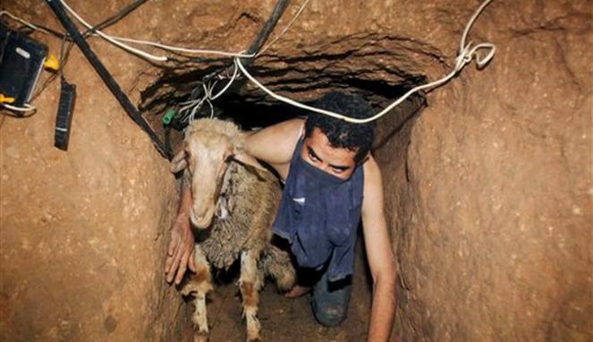 Hewan Kurban yang terpaksa harus disalurkan melalui terowongan bawah tanah akibat blokade Israel pada beberapa tahun lalu. Sumber: harapanumat.sch.id[/caption]