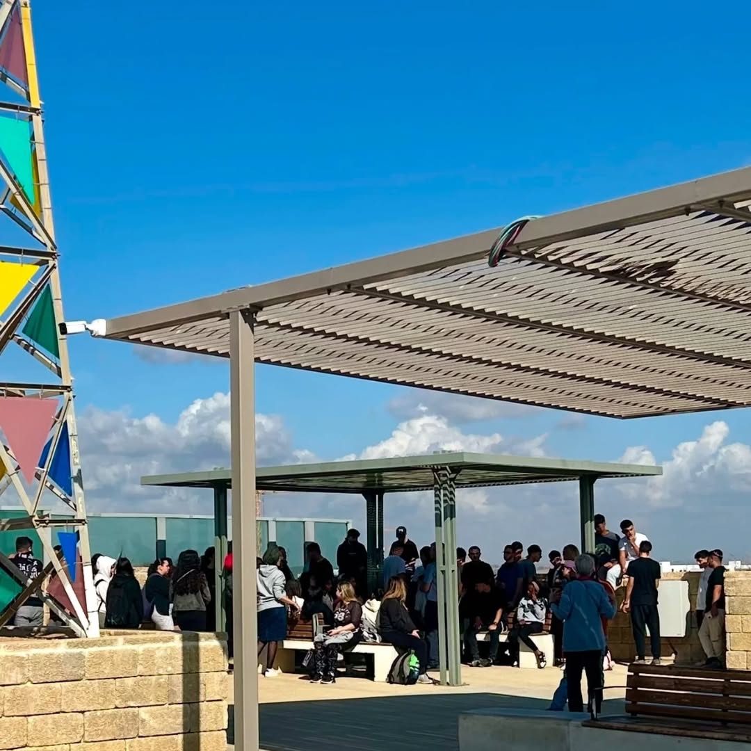 Anak-anak sekolah Israel di deck observasi di Sderot, Israel. Sumber: akun instagram: @matthewphoh[/caption]